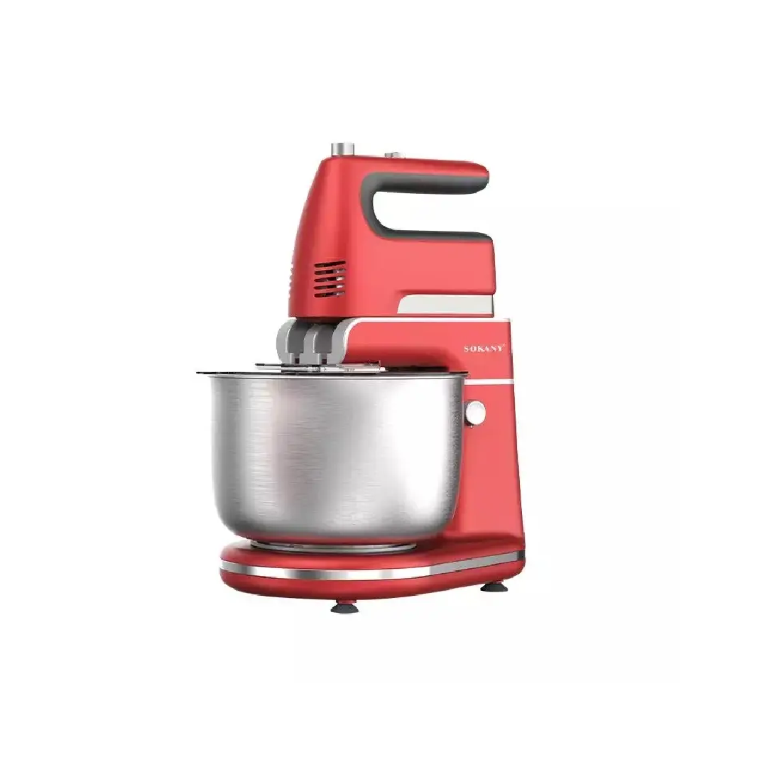 Soft start minimizes splatter; includes aluminum dough hooks and beaters guard. |