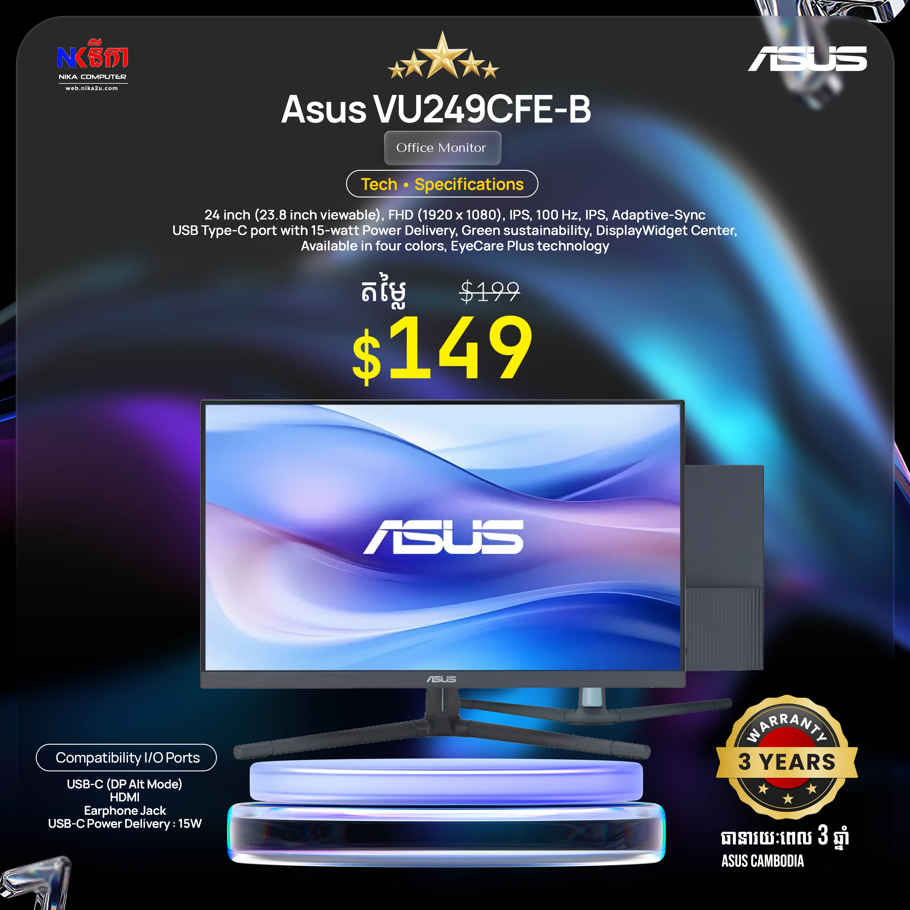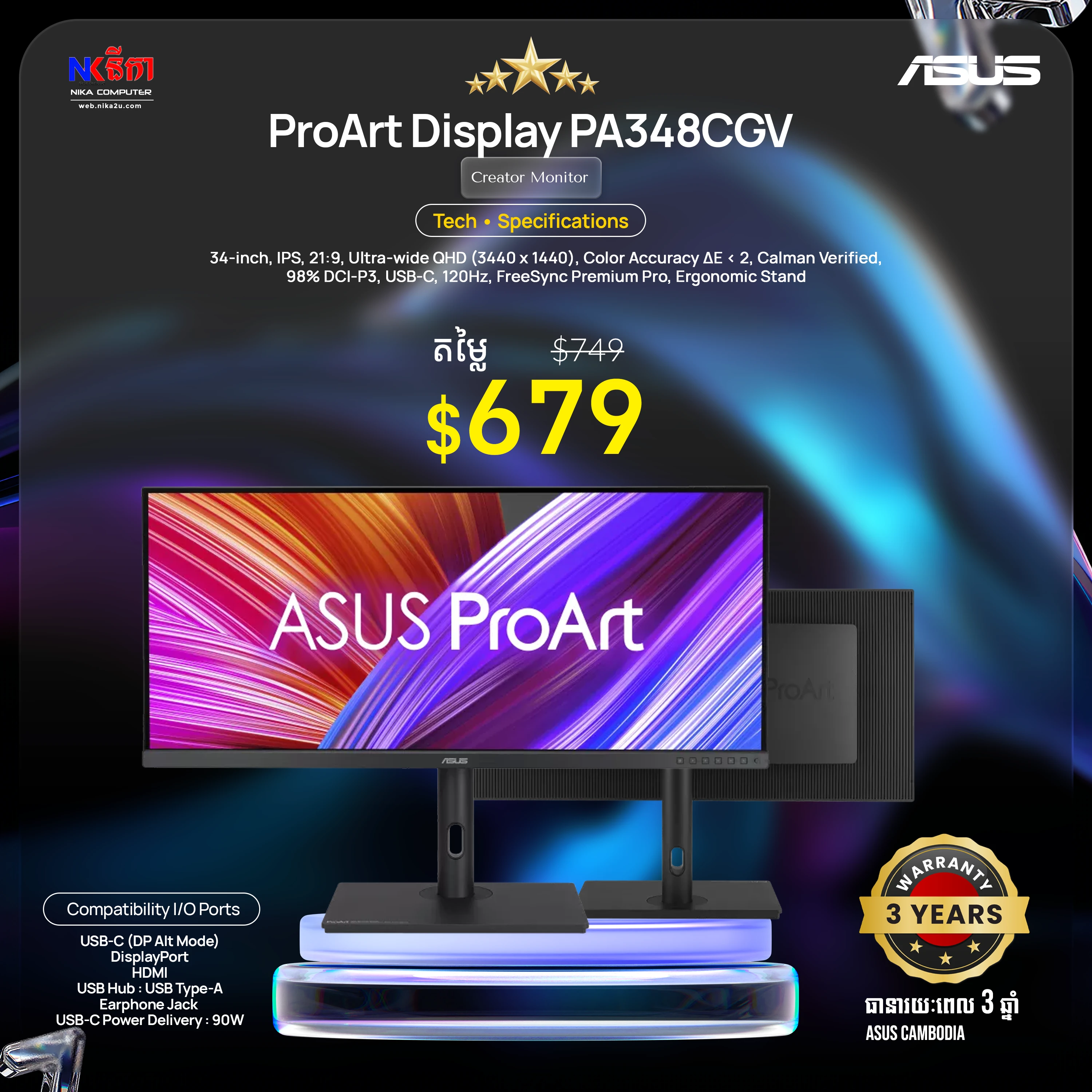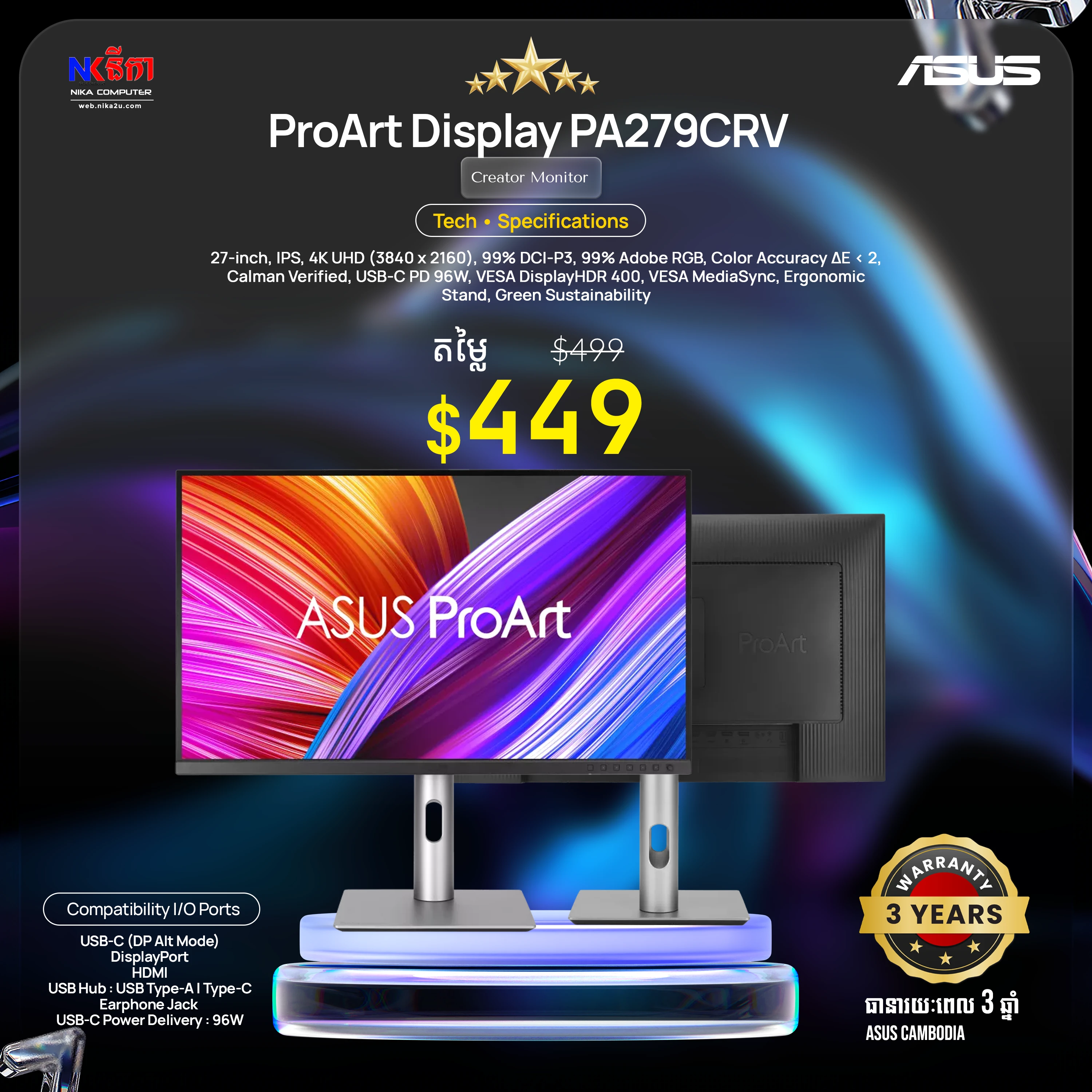 ASUS ProArt Display PA329CRV Professional Monitor – 32-inch (31.5-inch viewable), IPS, 4K UHD (3840 x 2160), 98% DCI-P3, Color Accuracy ΔE < 2, Calman Verified, USB-C PD 96W, VESA DisplayHDR 400, VESA MediaSync, Ergonomic Stand, Green Sustainability