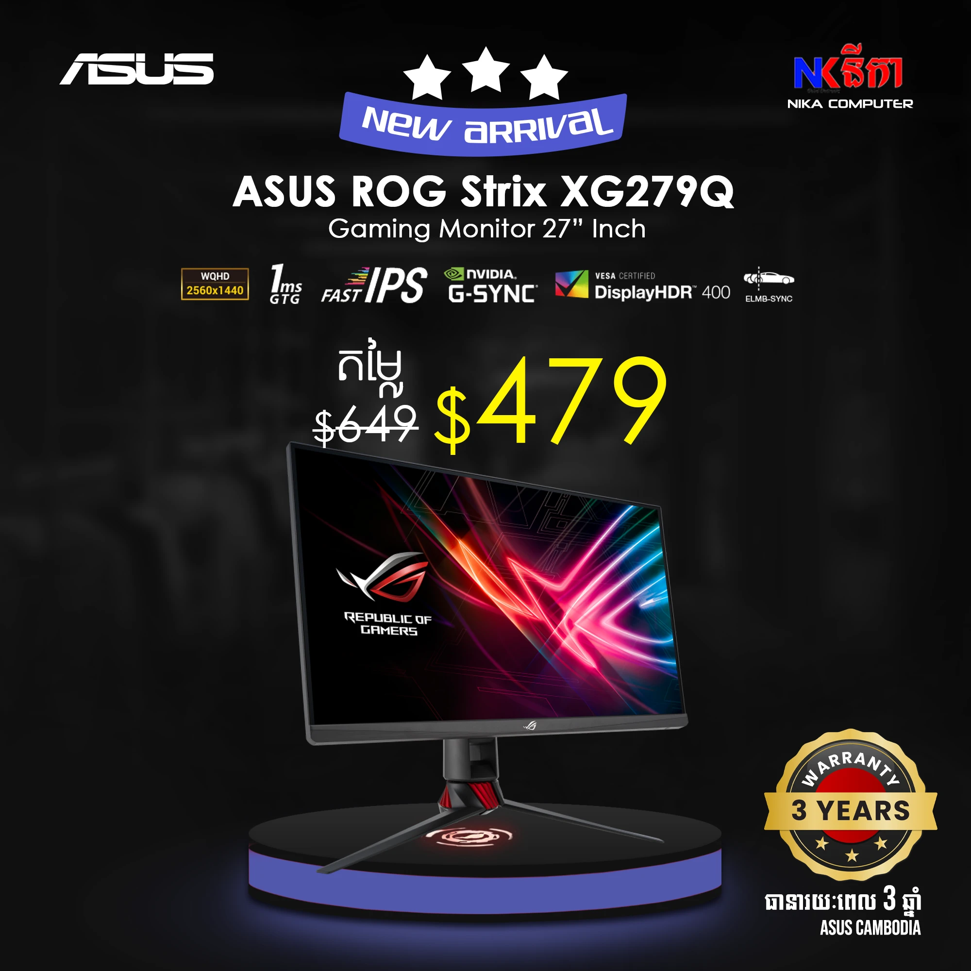 ROG Strix XG27UCS USB Type-C Gaming Monitor – 27-inch 4K UHD (3840x2160), 160Hz (Above 144Hz), 1ms (GTG), Fast IPS, Extreme Low Motion Blur Sync, USB Type-C, G-Sync compatible(under processing), DisplayWidget Center, tripod socket, HDR