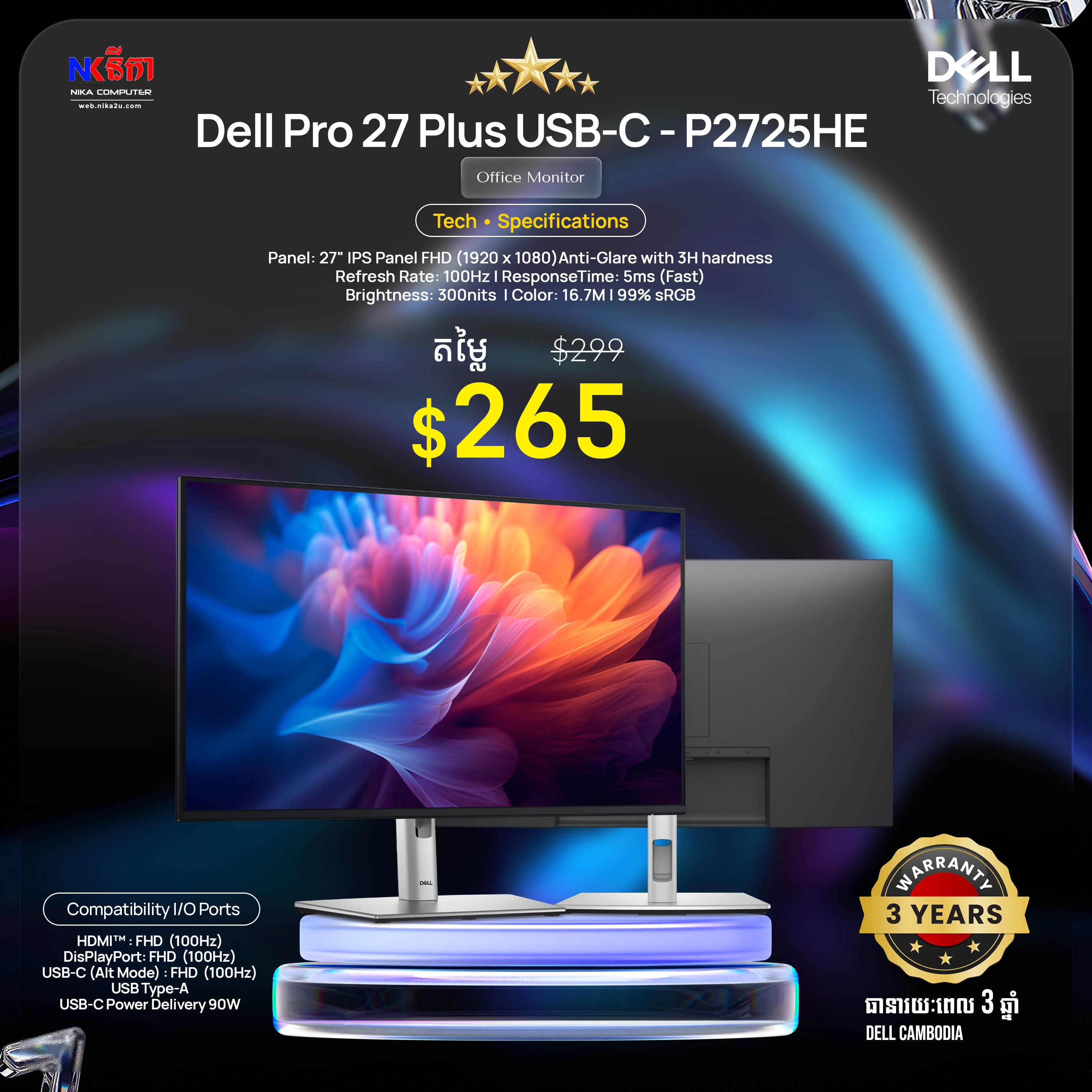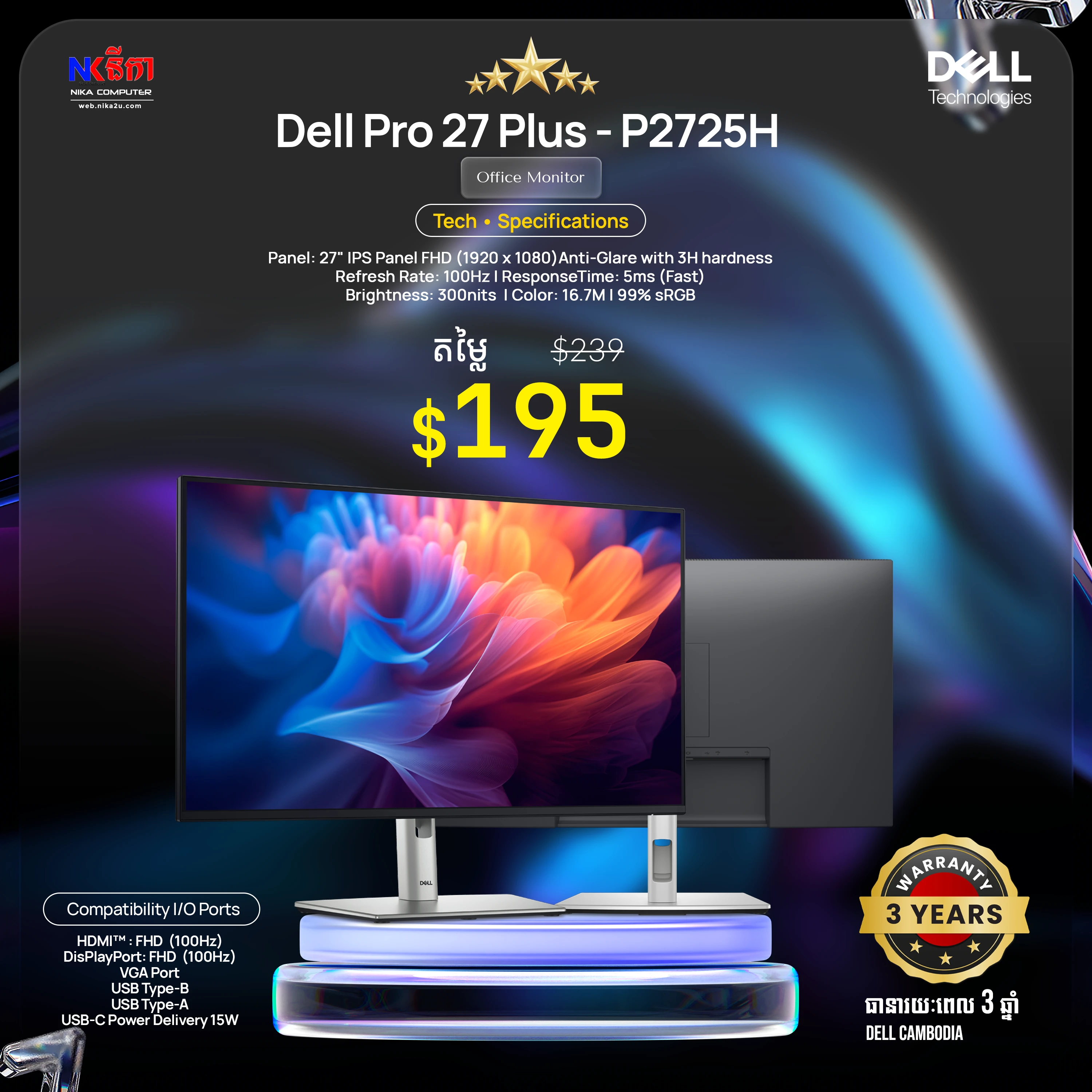 Dell 21.5'' SE2225HM Monitor (1920x1080 at 100Hz HDMI/VGA)