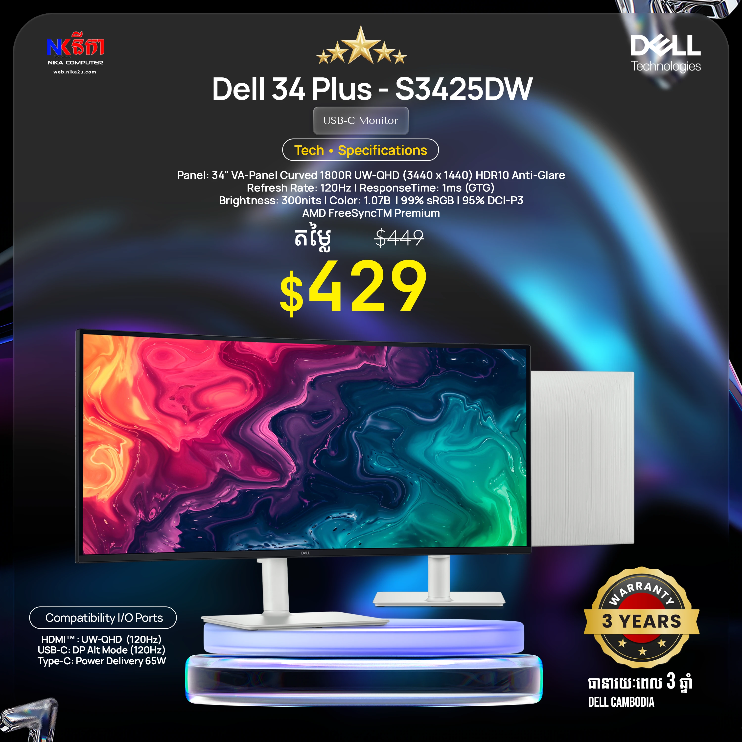 Dell 27'' S2725QS Plus Monitor 4K UHD (3840 x 2160, 120Hz/HDMI/DP/Speaker)