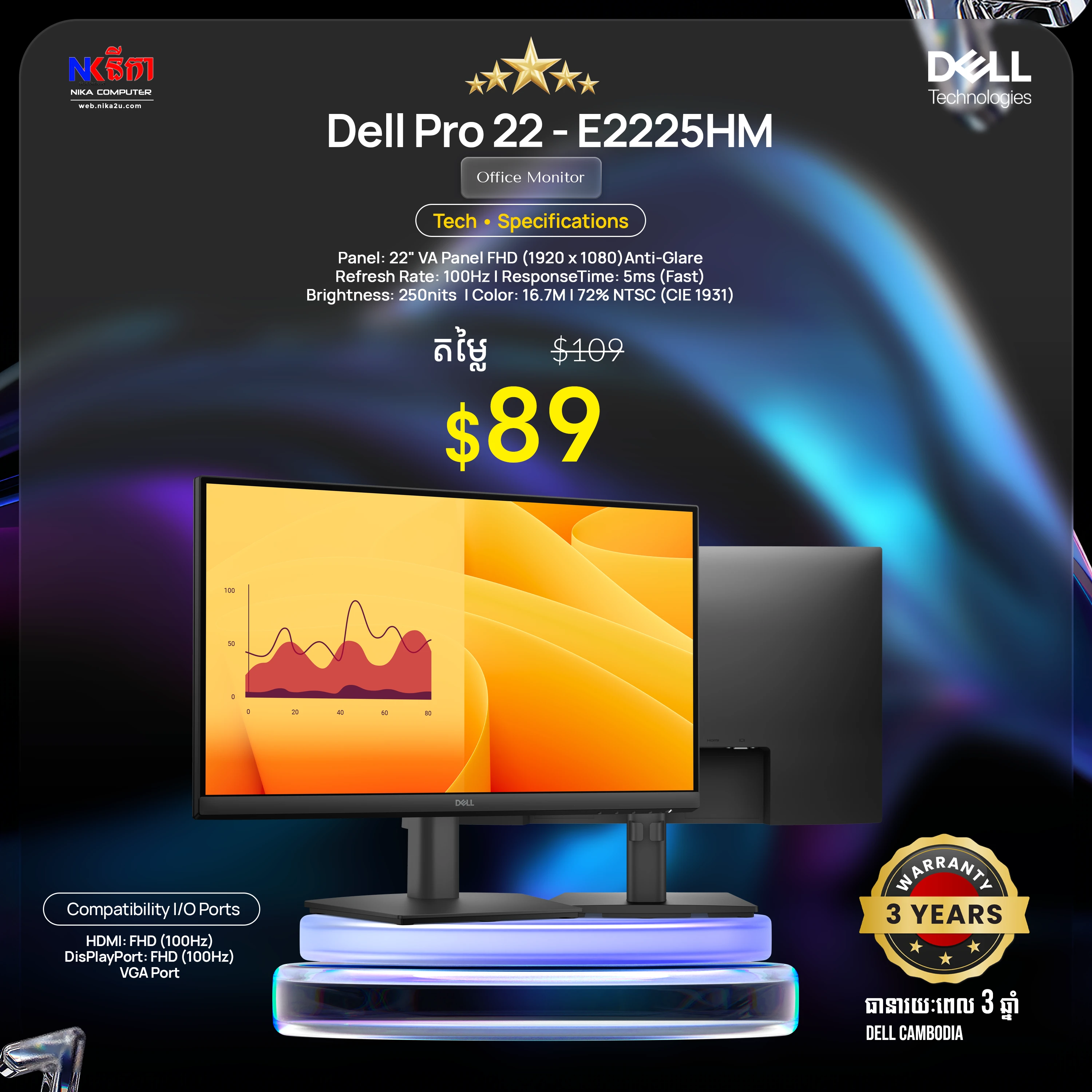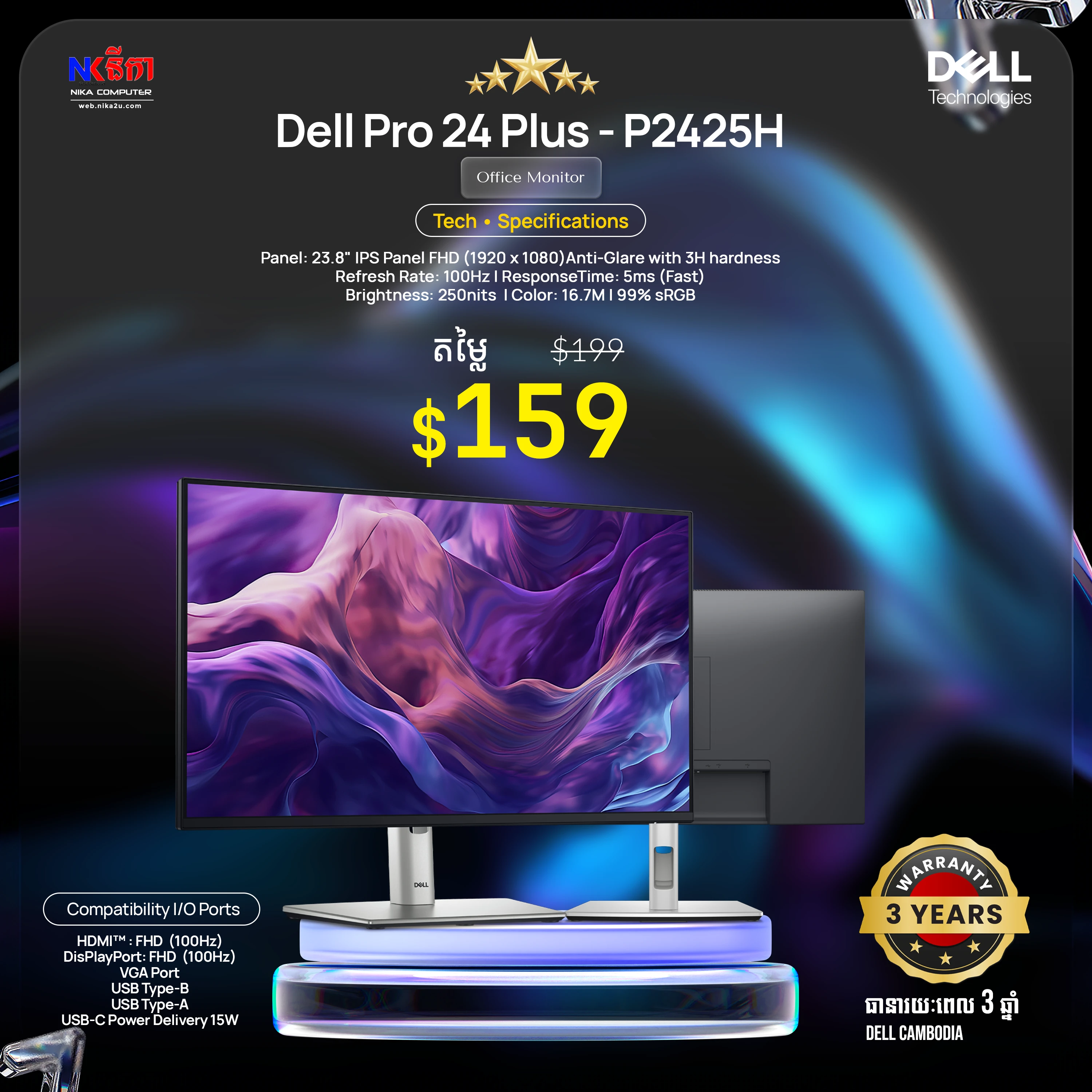 Dell Pro 27" Plus P2725DE Monitor WQHD (2560 x 1440 at 100Hz, HDMI/DP/
